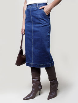 Джинсовая юбка прямая с разрезом и декоративной стиркой из эластичного денима