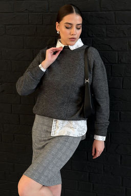 Костюм (джемпер+юбка) М323176Wb серый графит
