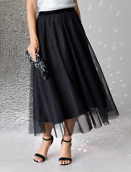 Юбка миди вечерняя на резинке из матового сатина с мягкой сеткой