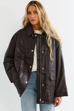 Утепленная парка из эко-кожи Brown