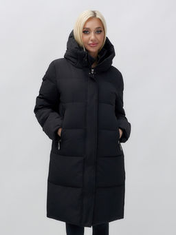 Куртка зимняя женская с капюшоном удлиненная стеганная черного цвета 9650Ch