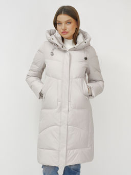Куртка зимняя с капюшоном удлиненная стеганная светло-бежевого цвета