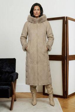 22373 BEIGE Пальто зимнее женское облегченное (150 гр. холлофайбера)