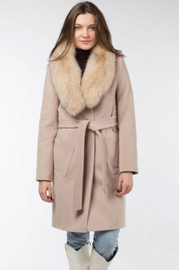 E-1961 DK. GREY Пальто женское с натуральным мехом Evcanbady
