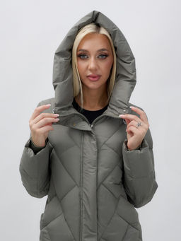 Пальто зимнее утепленное с капюшоном женское цвета хаки 1318Kh