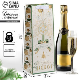 Пакет новогодний подарочный под бутылку Счастливого праздника, 13 х 35 х 10 см