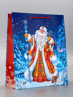 Цена за 2 шт. Пакет подарочный новогодний ламинированный, Дед Мороз в лесу , 26?12?32 см