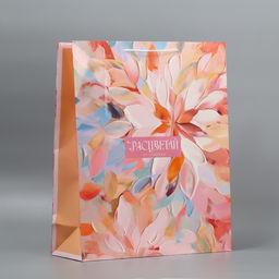 Пакет подарочный ламинированный Цветы эмоций, персиковый, 18?22.3?10 см