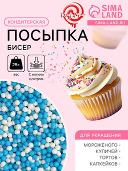 Цена за 3 шт. Посыпка кондитерская с мягким центром Бисер бело-голубая, 25 г