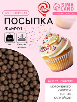 Цена за 2 шт. Кондитерская посыпка с мягким центром Жемчуг коричневый, 50 г