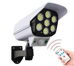 Мощный настенный уличный, светодиодный светильник, прожектор 2 в 1 с датчиком движения, Муляж камеры наблюдения на солнечной батарее, с пультом дистанционного управления,, 77 LED