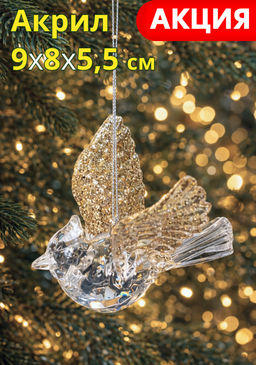 Игрушка елочная, 9 см, акрил, прозрачно-золотистая, Птица, Event