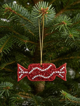 Игрушка елочная, 9 см, бисер/дерево, красно-белая, Конфета, New year