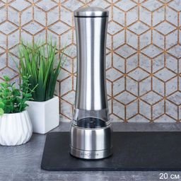 9148 GIPFEL Мельница электрическая TROPICA с подсветкой для соли и перца, 22 см. Цвет: серебристый. Материал: нержавеющая сталь, органическое стекло, керамика, пластик. Батарейки в комплект не входят, требуется 4 шт. "АА".