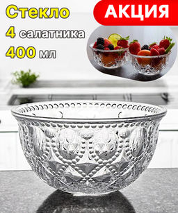 Набор салатников Dubai, прозрачный, 13 см, 0,4 л, 4 шт