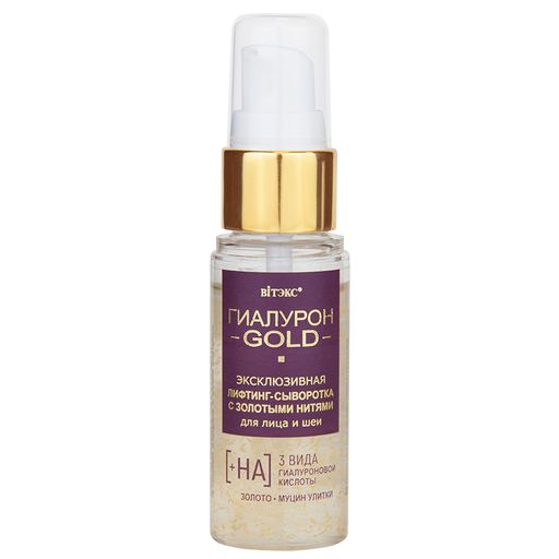 Описание товара Витекс Гиалурон GOLD Лифтинг-сыворотка для лица и шеи с золотыми нитями 30мл