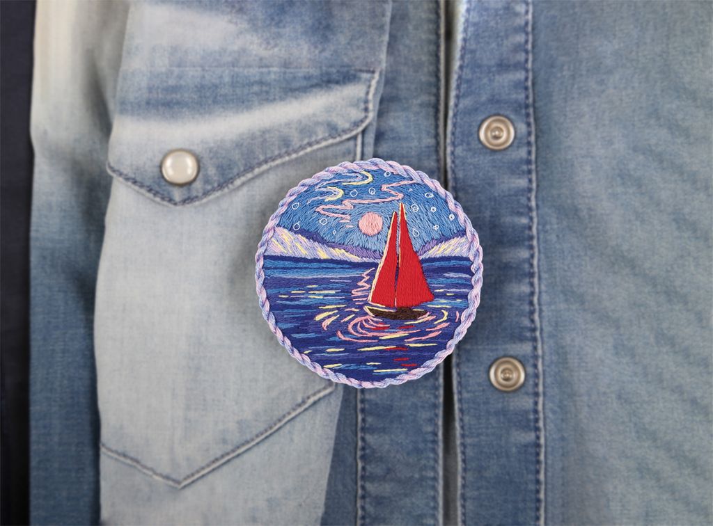 • Набор для вышивания PANNA Живая картина JK-2207 Брошь. Парусник под луной 5.5 х 5.5 см