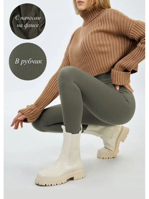 • K10823 Легинсы в рубчик (утеплитель ФЛИС) ХАКИ