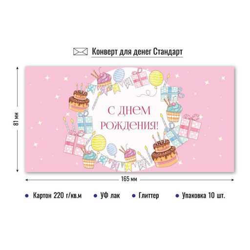 • Цена за 5 шт. Конверт для денег "С Днем Рождения!" (9210) уф-лак, блестки