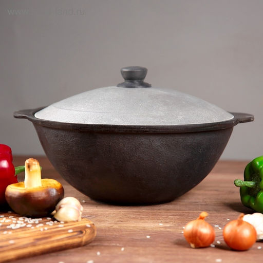Казан — основа среднеазиатской кухни. Без него немыслимо приготовление плова и шурпы. Казан неприхотлив в уходе и позволяет приготовить ни с чем не сравнимые блюда. За сотни лет существования казана в среднеазиатской кухне придумано множество рецептов специально для этой посуды.Преимущества:литой корпус делает всю конструкцию надёжной и долговечной;металлические ручки дают возможность использовать изделие в духовке;толстые стенки и дно благодаря своей теплопроводности полностью раскрывают вкус блюда;большой объём позволяет приготовить блюдо для всей семьи.Все товары производства Узбекистан. Диаметр, см: 29. Объём, л: 3.5. Диаметр дна, см: 12. Крышка: Нет. Съёмная ручка: Нет. Тип покрытия: Без покрытия. Можно мыть в посудомоечной машине: Нет. Подходит для использования на огне: Да. Вид: Казан узбекский. Бесплатная доставка: Да. Примечание: На внешней стороне изделия допускаются небольшие царапины, которые не влияют на качество изделия и не являются браком.. Примечание: Ржавление чугуна не является браком или заводским дефектом, а так же не влияет на качество материала. Рекомендации по уходу находятся в инструкции.. Примечание: В наименовании указан полный объём с замером до края.Полезный объём будет отличаться в меньшую сторону от указанного..
