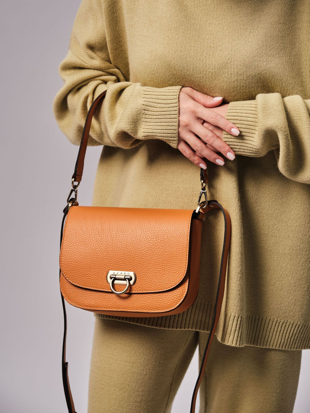 Детали: натуральная кожа, натуральная замша на внутренней стороне клапана, одно отделение на хлопковой водонепроницаемой подкладке, 1 внешний накладной карман, 1 скрытый карман между основным внутренним отделением и накладным карманом, зажим-вертушка, съемный регулируемый плечевой ремень. Женская сумка из натуральной зернистой кожи Azaro 30741 оранжевый карандаш станет отличным дополнением вашего образа и надежным аксессуаром для повседневной жизни. Изготовленная из натуральной кожи, она обладает высокой прочностью и долговечностью. Эта женская сумка кросс боди выполнена в аккуратном и элегантном дизайне, что делает её универсальным вариантом как для ежедневного использования, так и для особых случаев. Удобный длинный регулируемый ремень позволяет настроить длину под любой рост и фигуру и носить модель через плечо как кросс-боди, освобождая руки. С коротким ремнем сумку можно носить в руках, на плече или локте. Без ремня - как клатч. Водонепроницаемая подкладка сбережет изделие от повреждений. Удобный замок обеспечивает быстрый доступ к нужным вещам. Два отделения и внутренний карман позволяют удобно расположить вещи. Использование натуральных материалов гарантирует не только стильный внешний вид, но и функциональность. Если вы ищете идеальный аксессуар для создания образа или подарка близкому человеку, эта модель точно вас не разочарует. -- Характеристики -- Цвет: оранжевый карандаш Материал: Натуральная кожа Бренд: Azaro Тип: Сумка на плечо Страна-изготовитель: Россия Высота, см: 17 Ширина, см: 21 Глубина, см: 9 Материал подкладки: Хлопок Количество внутренних отделений: 2 Тип застежки: Зажим Формат А4: не вмещает Высота ручек, см: 23 Длина плечевого ремня, см: 120 Вес товара, г: 670 Ручки: На запястье;На локоть;На плечо Пол: женская коллекция Группа товара: Сумки