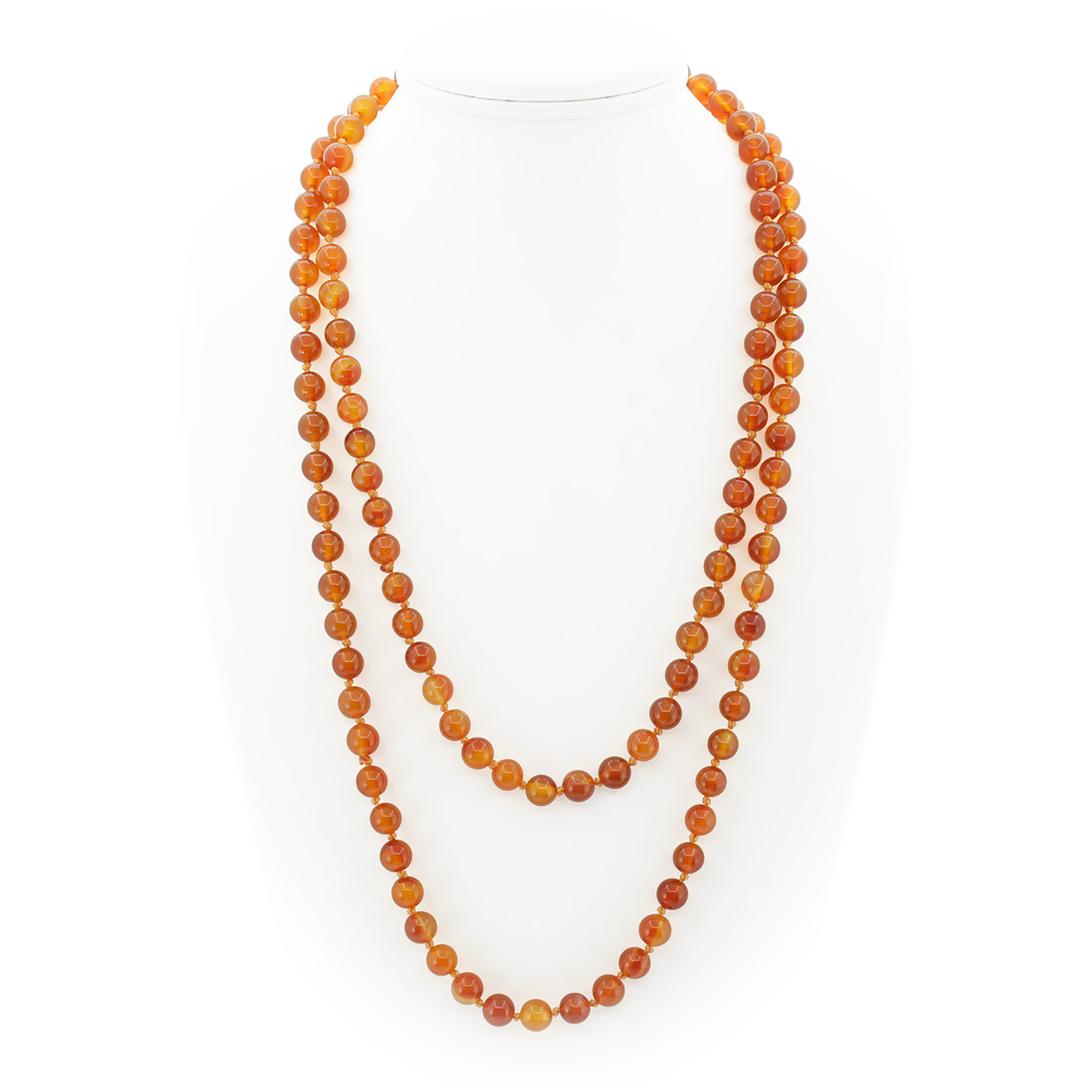 Бусы из натурального сердолика. Длина бус позволяет обернуть их вокруг шеи два раза или завязать узлом. Диаметр бусин 8мм, длина бус 120см.
