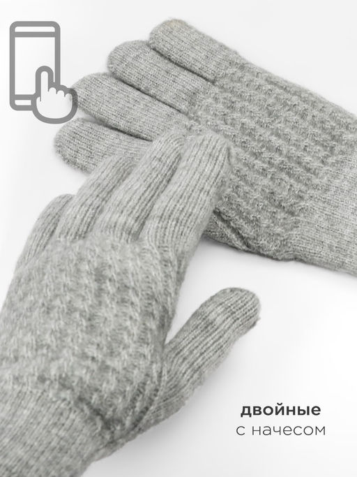 Тёплые, двойные перчатки из вязаного трикотажа, с начёсом. Отлично сохраняют тепло и защищают руки от мороза в холодное время года. Большой и указательный пальцы адаптированы для использования сенсорного телефона.