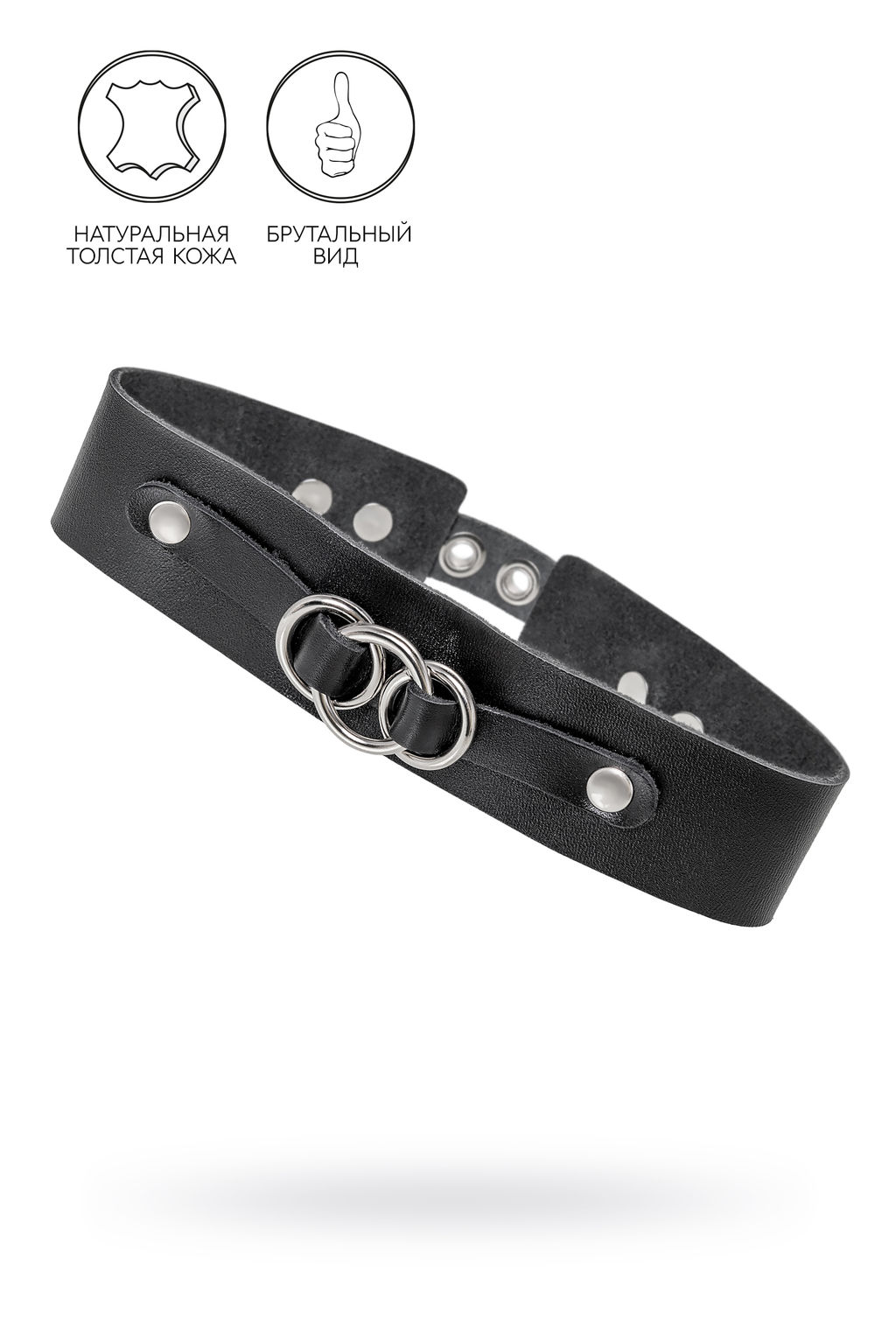 Чокер-ошейник Pecado BDSM, со связанными кольцами на подложке, натуральная кожа, чёрный
