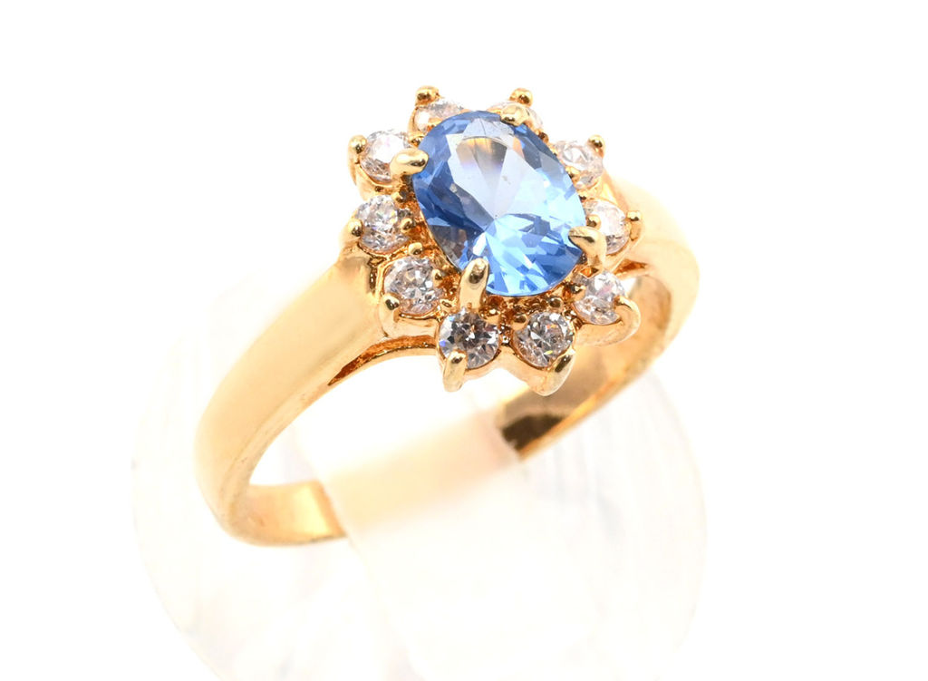 • Кольцо позолота "Овал" с голубым цирконом в стразах, размер 16
