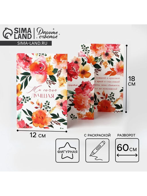 • Цена за 5 шт. Поздравительная открытка с раскраской «Самой лучшей», 12×18 см