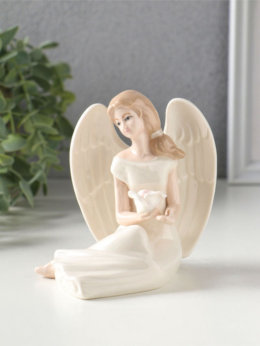 • Сувенир керамика "Девушка-ангел в белом платье, с белой розой в ладонях" 11,3х10х9,8 см