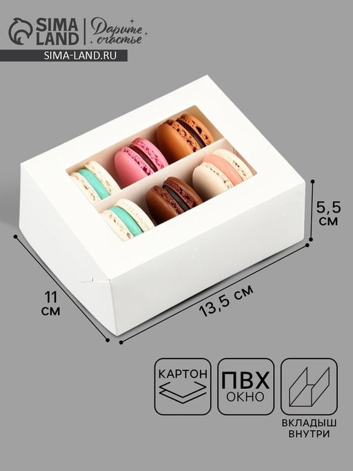 Цена за 5 шт. Кондитерская упаковка для макарун с окном, «Белая», 11×13.5×5.5 см