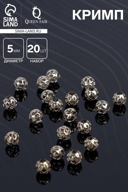 Кримп - зажимная бусина СМ-394, набор 20 шт. 5 мм, цвет серебро