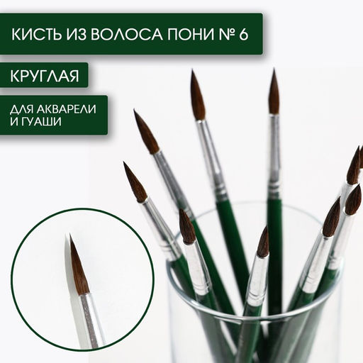 • Цена за 10 шт. Кисть для рисования из волоса пони круглая № 6 (диаметр обоймы 4 мм; длина ворса 17 мм)