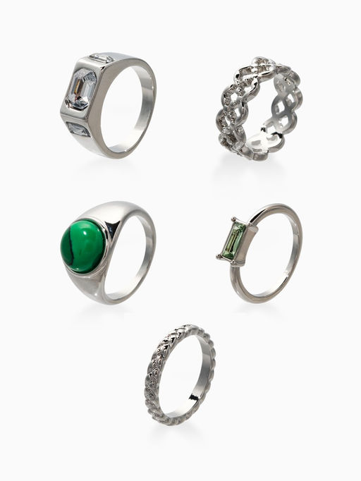 Набор колец 5 шт "Новый стиль" малахит, размер МИКС, цвет изумрудный в серебре