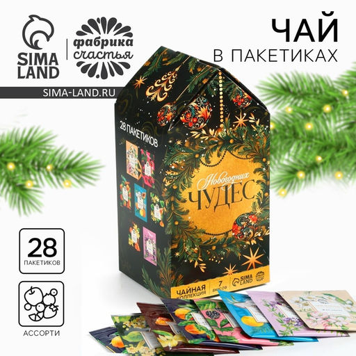 • Чай новогодний «Новогодних чудес», ассорти вкусов, 28 пакетиков × 1.8 г