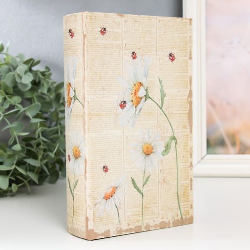 • Шкатулка книга - сейф Ромашки и божьи коровки, дерево, искусственная кожа, 21?13?5 см
