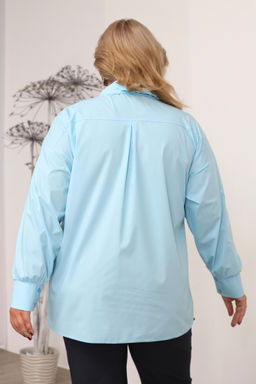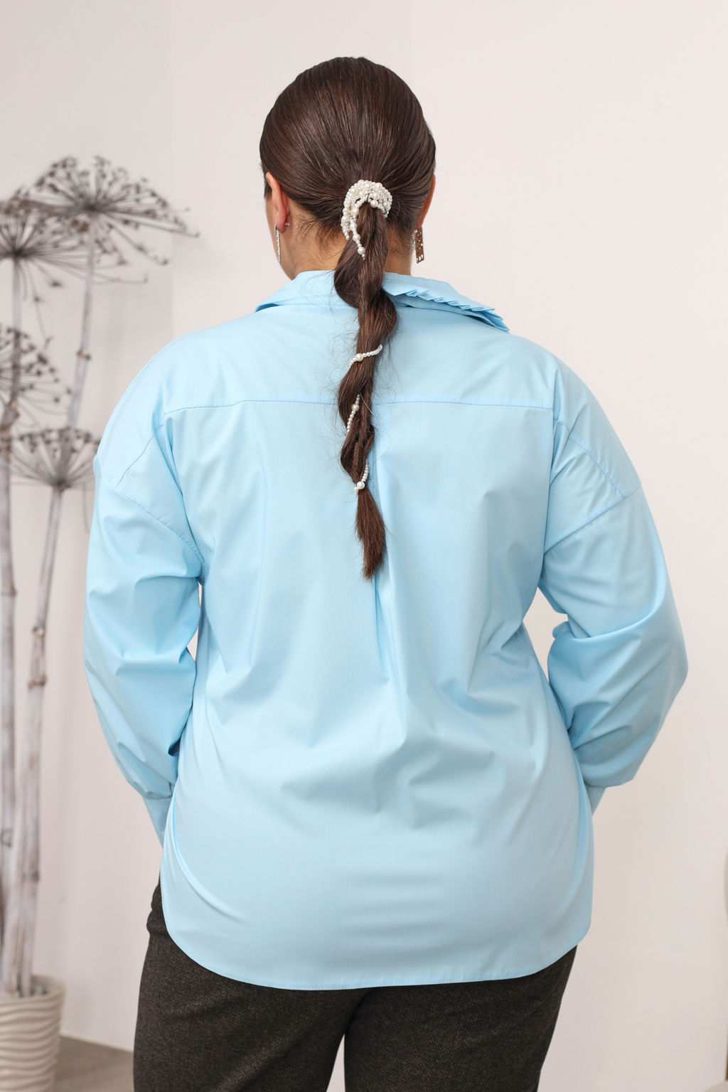 Рубашка с воротником-стойкой и складчатыми элементами на средний рост голубая