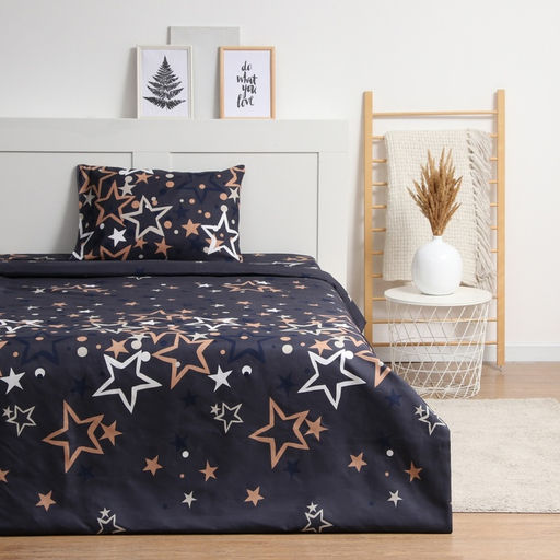 Размер наволочки, см: 50 х 70. Ткань: Полисатин. Плотность, г/м²: 80. Размер: Евро. На резинке: Нет. Тематика: Звёзды. Вид упаковки: PVC-пакет. Рекомендации по уходу: Не отбеливать. Рекомендации по уходу: Стирка при 40 °С. Рекомендации по уходу: Барабанная сушка при низкой температуре. Рекомендации по уходу: Глажка при 150 °С. Количество наволочек: 2. Размер пододеяльника, см: 200 х 215. Размер простыни, см: 200 х 215. Простыня в комплекте: Да. Вид застёжки наволочки: Клапан. Вид застёжки пододеяльника: Без застёжки. Бесплатная доставка: Да.