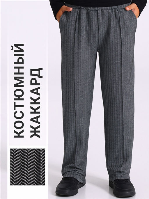 брюки,хлопок 55% + ПЭ 42% + лайкра 3%,жаккард / хлопок 55% + ПЭ 42% + лайкра 3%,- / твид черный+серый / - / - / - / -,Брюки для мальчика выполнены из плотного полотна с рельефным рисунком, выполненным с применением жаккардового плетения. Изделие на эластичном поясе, имеет удобные карманы и декоративные отстрочки-стрелки. Отличный вариант для школы! Уход: только машинная стирка (руками не стирать!) при температуре 40 градусов, без предварительного замачивания. Ассортимент осенне-зимнего периода.