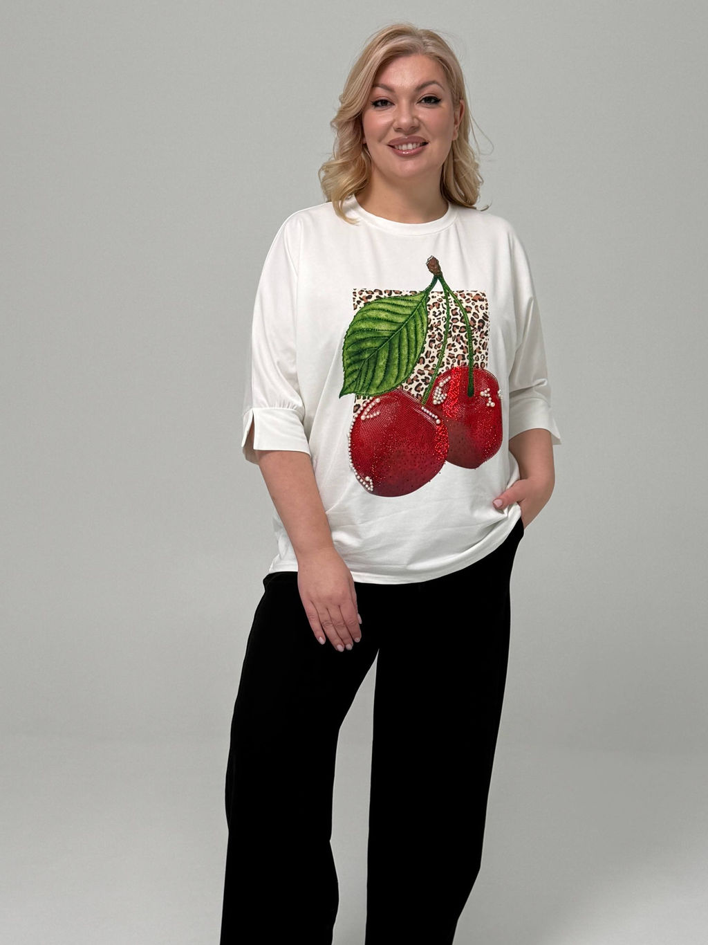 Туника с вишнево-леопардовым принтом белая­