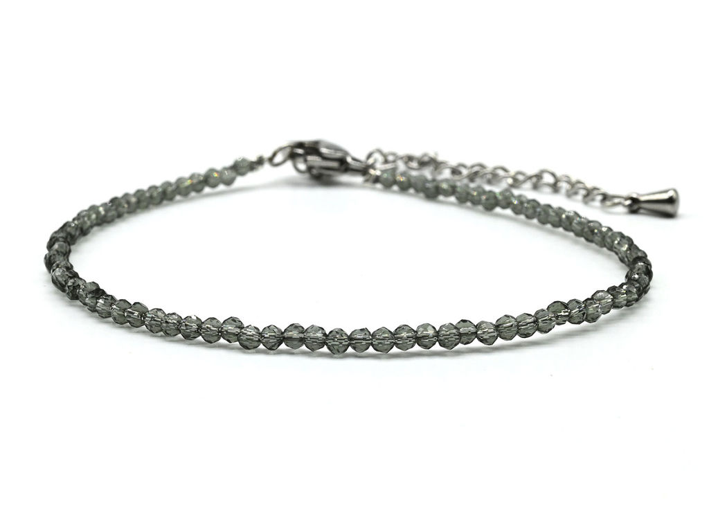 • Браслет из граненых бусин мелких 2мм циркон цв.серый, 17см