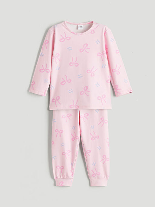 Bisiklet Yaka Fiyonk Desenli K?z ?ocuk Pijama Tak?m?