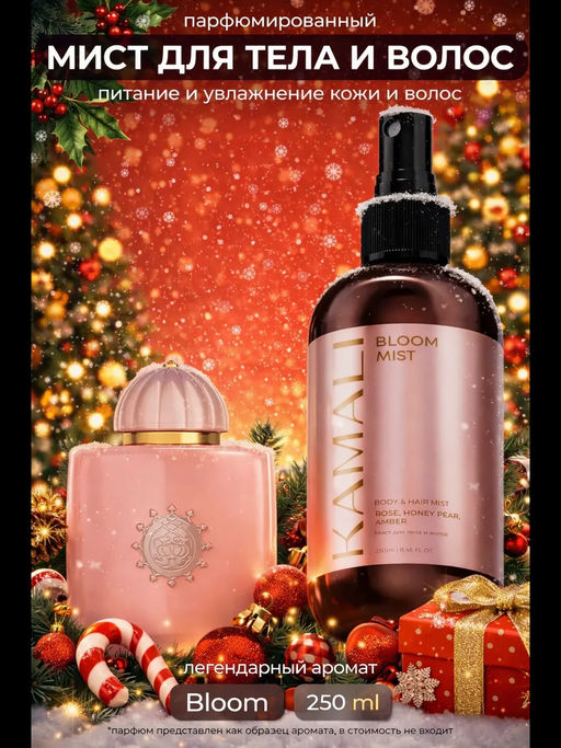 Парфюмированный мист для волос и тела от KAMALI накрывает волной свежести и окутывает утонченным ароматом. Благодаря уникальной формуле спрей-мист не только оставляет приятный стойкий аромат, но и способствует улучшению состояния волос и кожи. Парфюмерный спрей (для волос и тела) глубоко увлажняет кожу лица и тела, смягчает волосы и придает естественное сияние. Мист распыляется невесомым облаком благодаря дозатору с мелкодисперсным распылением, не оставляет липкости и следов на одежде. Увлажняющий спрей заменит духи.Мист — отличный подарок девушке на 8 марта, Новый год и день рождения.