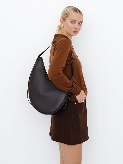 Оригинальная сумка в лаконичном дизайне с ассиметричными краями, выполнена из натуральной кожи. Дополнена серебристой фурнитурой. Данная модель закрывается на молнию. Носится в руке или на плече за встроенный ремень с регулировкой длины.  Каркас жесткий.