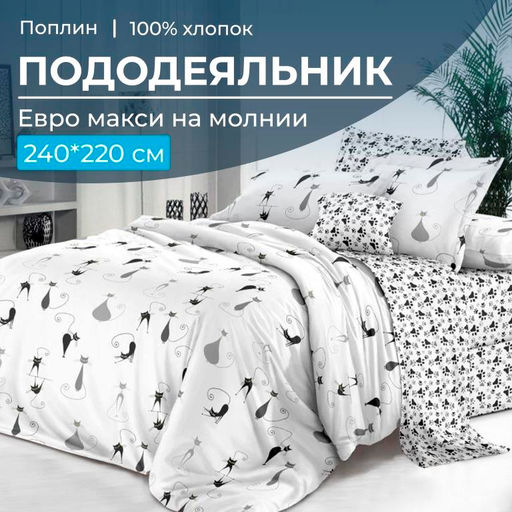 Артикул: Пододеяльник Евромакси 240*220 см, на молнии, поплин (Кошечка (основа))