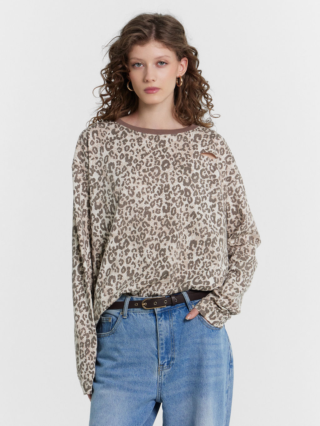 • Лонгслив женский с леопардовым принтом потертый леопард 122868R