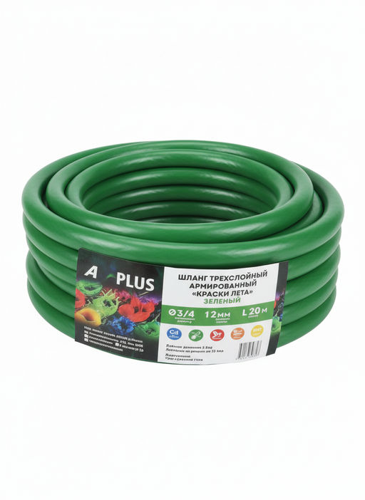 • Шланг трехслойный армированный "Краски лета" зеленый 3/4 т.с. 2,0мм/бухта 20м