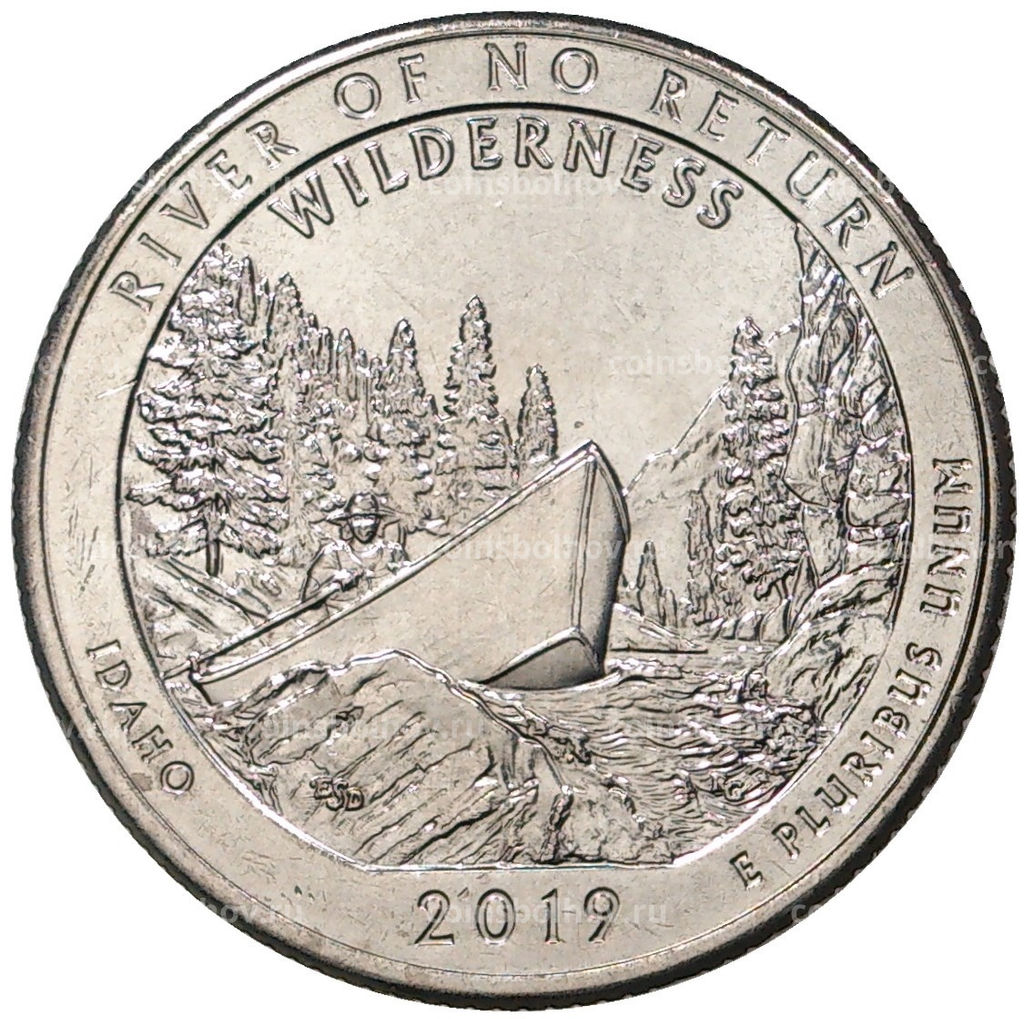 Монета 25 центов (1/4 доллара) 2019 года D США Национальные парки №50 Дикая местность Река Фрэнк Черч