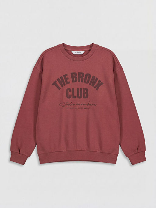 Bisiklet Yaka Bask?l? Erkek ?ocuk Sweatshirt